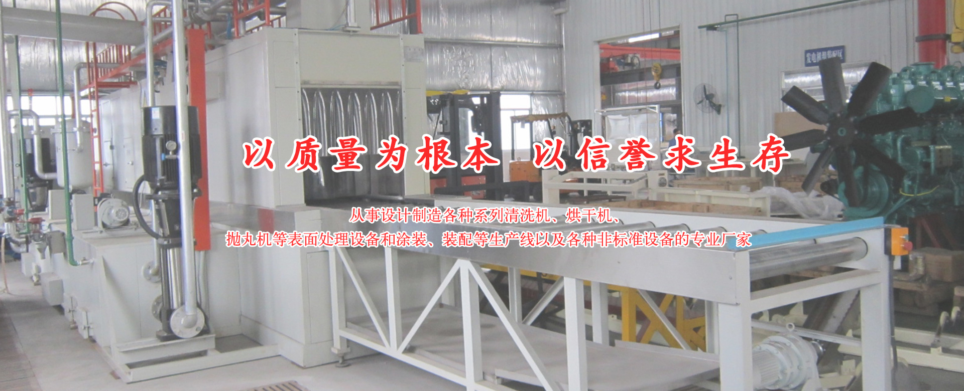 從事設計制造各種系列清洗機、烘干機、拋丸機等表面處理設備和涂裝、裝配等生產(chǎn)線以及各種非標準設備的專業(yè)廠家。